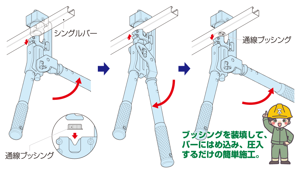 ●天井下地材(シングルバー、ダブルバー)への通線ブッシング取り付けに使用します。