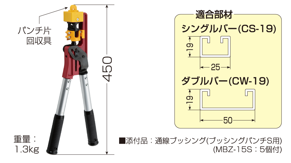 | MC-25S | ・シングルバー(CS-19) ・ダブルバー(CW-19) | 通線ブッシング(MBZ-15S) | φ15 | 1 |