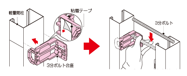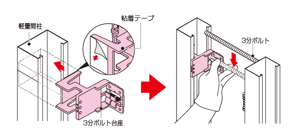 ●軽量間柱にボックス等を取り付ける為のボルト固定に使用します。
