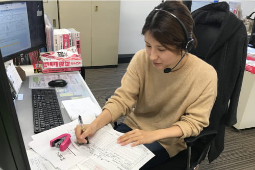 全国各地を飛び回る営業担当に代わって、ある時は入金管理などの事務作業をサポートし、またある時はお客様やユーザー様の窓口になるのが私の役割。特に「こういう現場にはどの製品を使ったらいいか」「取り付け方法が分からない」といった製品に関するお問い合わせのお電話は、相手の方が急いでいる場合が多く、私の対応次第で未来工業の印象が変わってしまうといっても過言ではありません。初めの頃は専門用語が理解できず、落ち込むこともありましたが、空いた時間などに勉強を重ねて少しずつ知識を深めてきました。さらに、会社の自己啓発支援制度を利用して、第二種電気工事士の資格も取得。社員の前向きなチャレンジを応援してくれる企業風土や制度があるのは、未来工業の大きな魅力です。